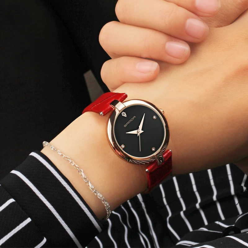 SANDA brand quartz watch ladies waterproof leather watch watch fashion romantic woman watch Relogio Faminino